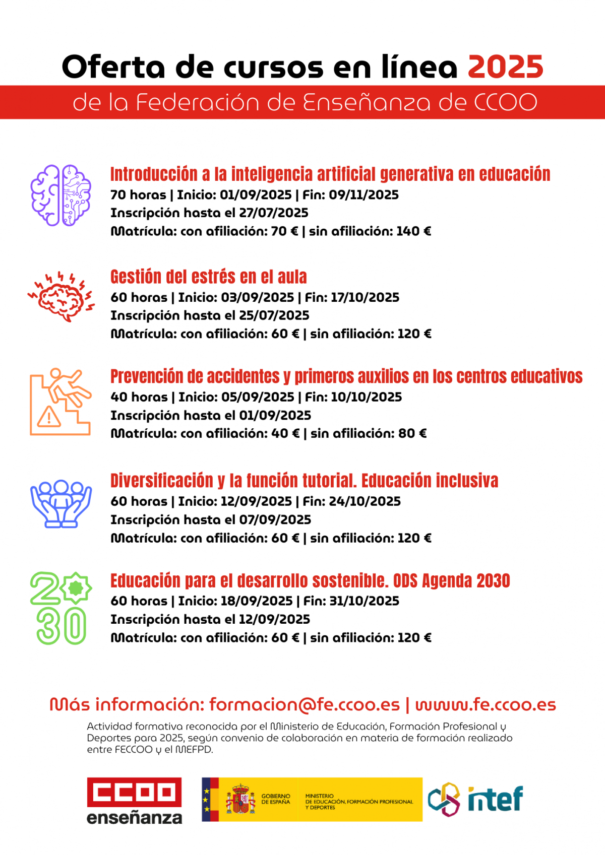 Consulta la información de los próximos cursos en línea organizados por la Federación de Enseñanza de CCOO.