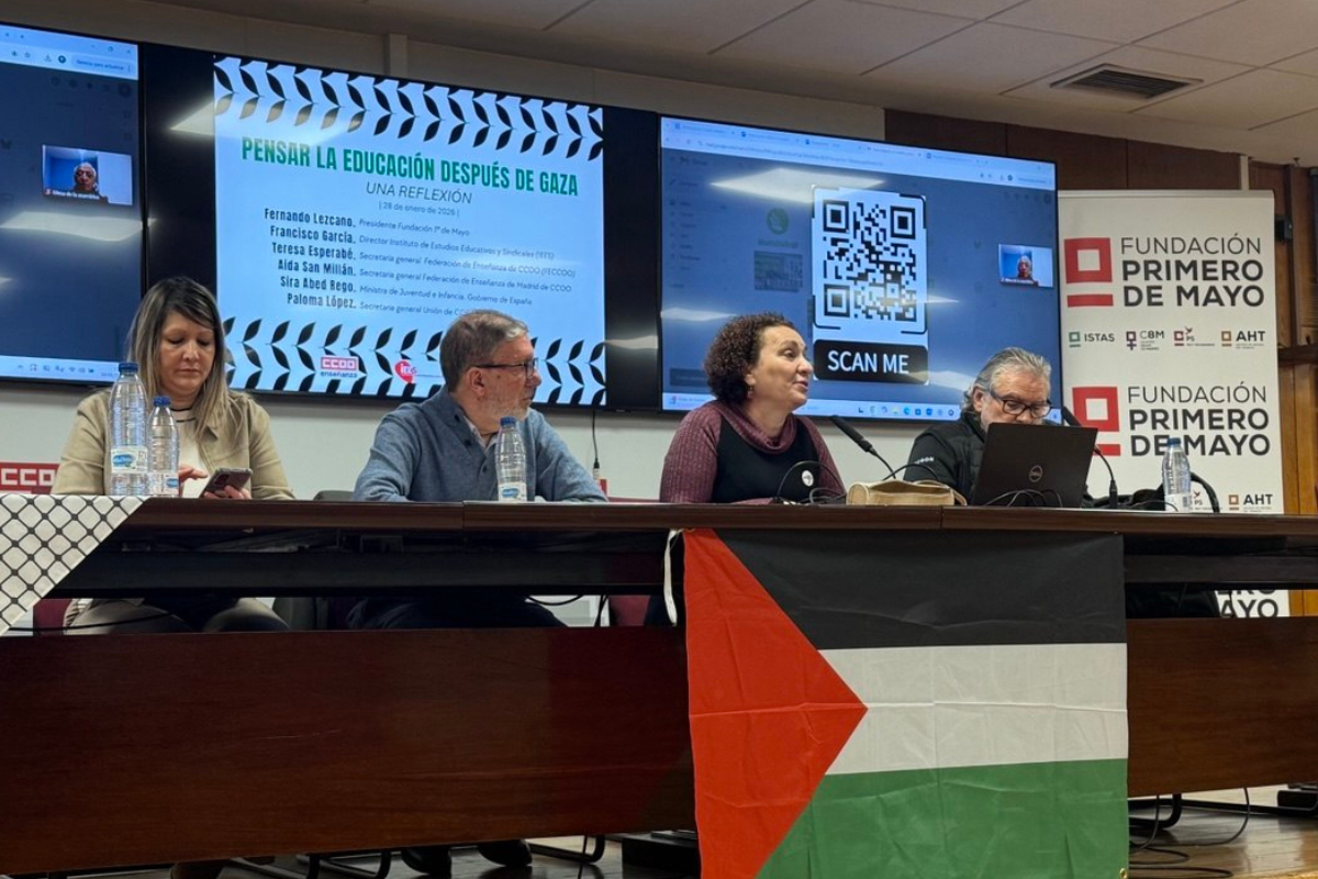 La Federación de Enseñanza de CCOO, junto con el Instituto de Estudios Educativos y Sindicales y la Fundación 1º de Mayo, han organizado una jornada de reflexión y debate sobre la parte de acción que nos toca, como docentes, ante el genocidio que Israel ha perpetrado sobre el pueblo palestino. Qué hemos hecho mal o qué no hemos hecho son dos preguntas que debería de preocuparnos, qué papel deberíamos jugar a partir de ahora como elemento importante de la reivindicación y la movilización, ante el genocidio y sus repercusiones educativas, culturales, sociales, políticas, etc.
